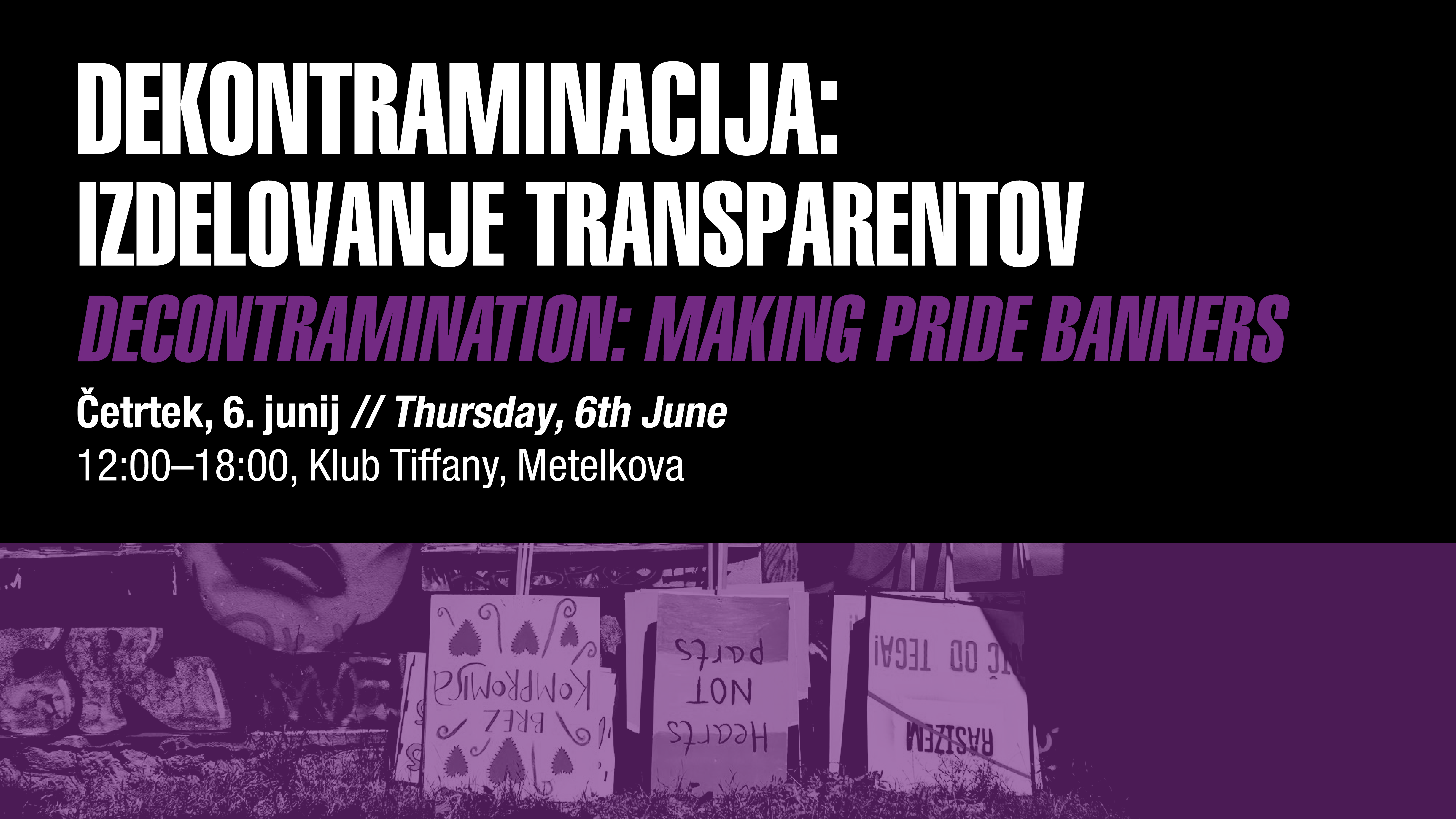 This workshop will be dedicated to making banners with the imagery of this year’s Ljubljana Pride Festival, but you will also get a chance to design and create banners of your own. All too often, public spaces are full of hateful graffiti, signs, stickers… but at least for the day of the Pride Parade we will take over the streets with our banners and decontRaminate the public space with messages that overcome the culture of hate.