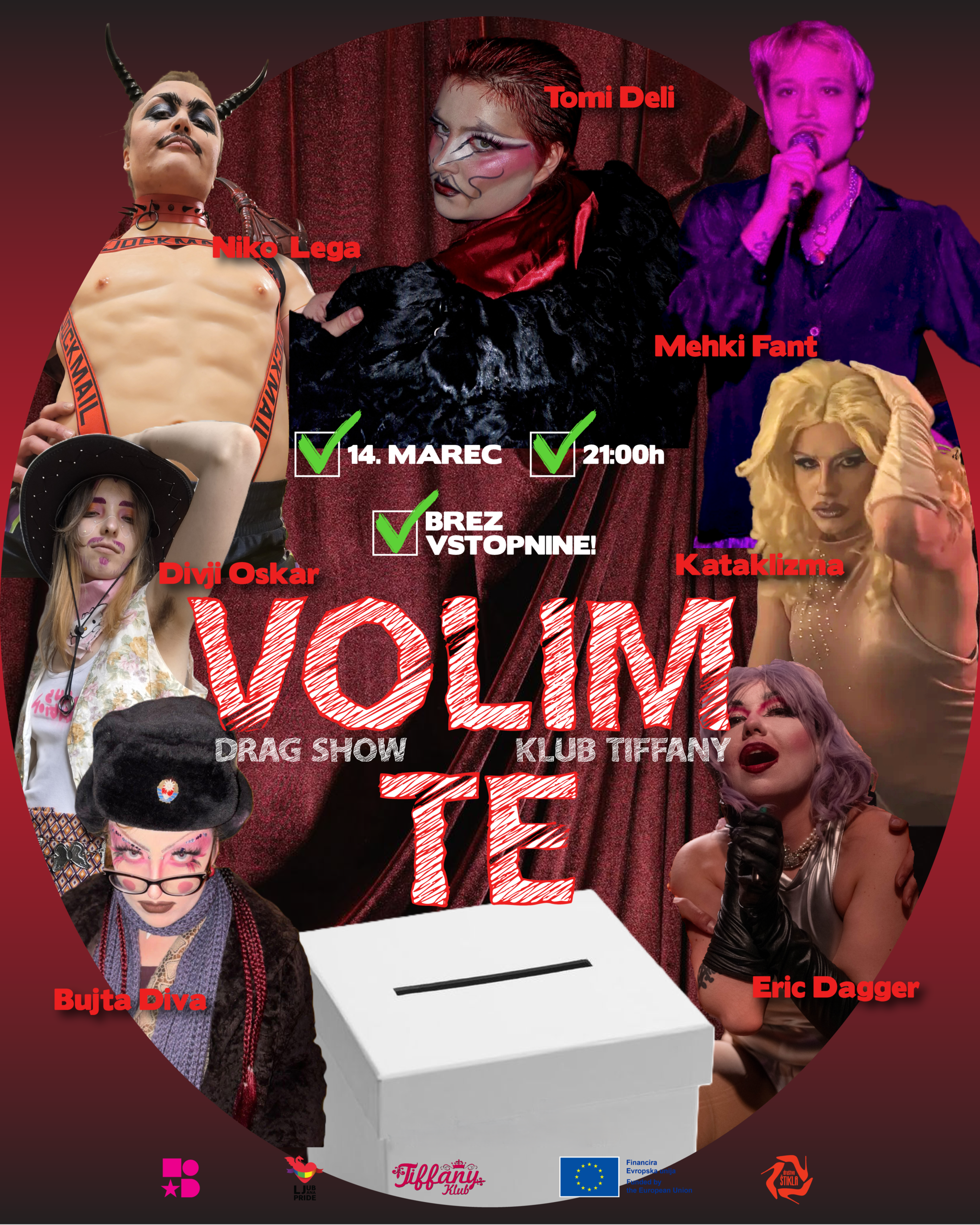 - 💥 Nastopajoče_i: Bujta Diva, Divji Oskar, Eric Dagger, Kataklizma, Mehki Fant, Niko Lega in Tomi Deli