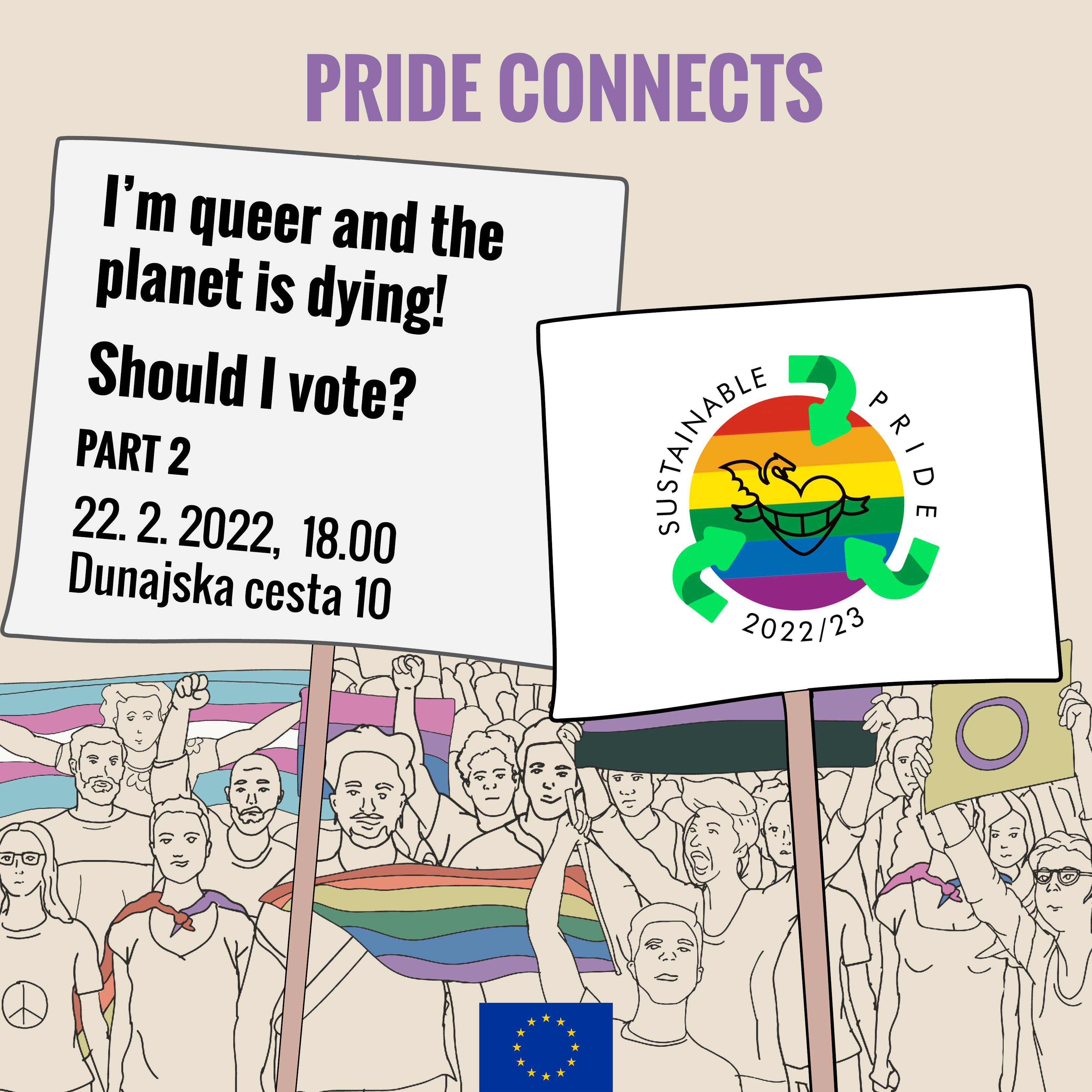 Parada povezuje posveča februar povezovanju teh tem. Skupaj bomo ugotovile_i, zakaj je volilna udeležba mladih kvir oseb bistvenega pomena, zakaj sta okoljski aktivizem in LGBTIQ+ aktivizem močno povezana in – kar je najpomembnejše – da volilna udeležba in politično udejstvovanje nista dolgočasna in suhoparna, temveč aktivna in transformativna!