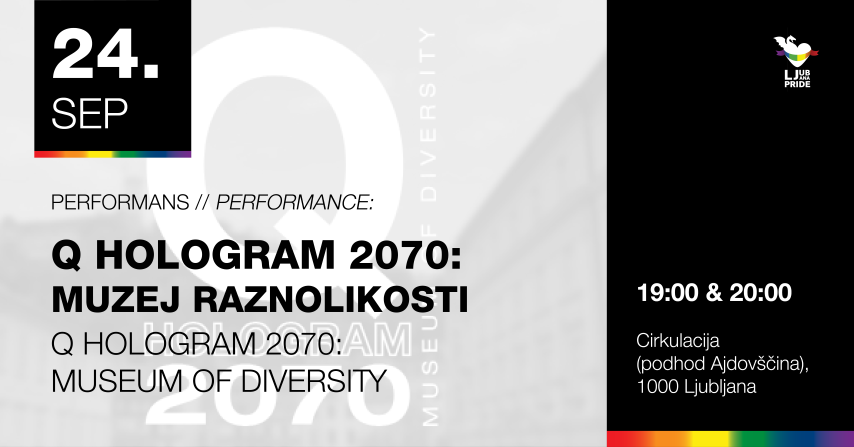 Dogodek se bo odvil 24. septembra v okviru Festivala Parada ponosa v Cirkulaciji 2 (Podhod Ajdovščina). Izveden bo v dveh ponovitvah ob 19.00 in 20.00.