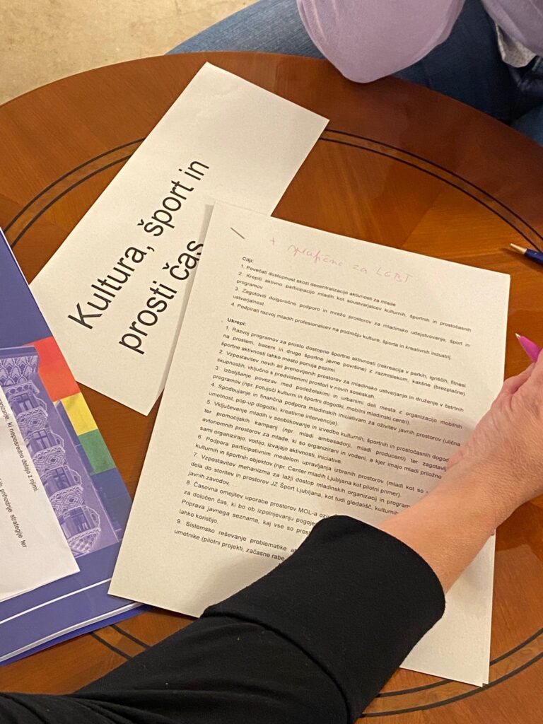 Udeleženke_ci so skozi predstavitve, svetovno kavarno in tematske pogovore naslovile_i ključna področja nove strategije ter predlagale_i konkretne ukrepe za bolj vključujoče in varno okolje za LGBTIQ+ mlade v mestu.